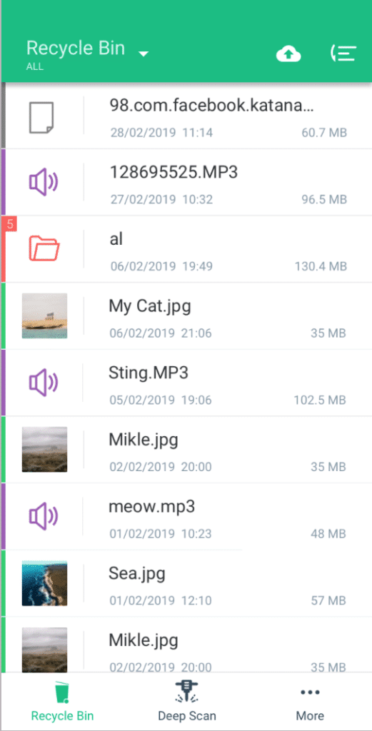 Once Dumpster is installed on your Android device, it will start restoring all of your previously deleted files. It’s important to know that the app will scan your device for all deleted files, whether or not it’s an audio file. Once your content is detected you’ll notice that your Recycle Bin will begin populating with those old deleted files.