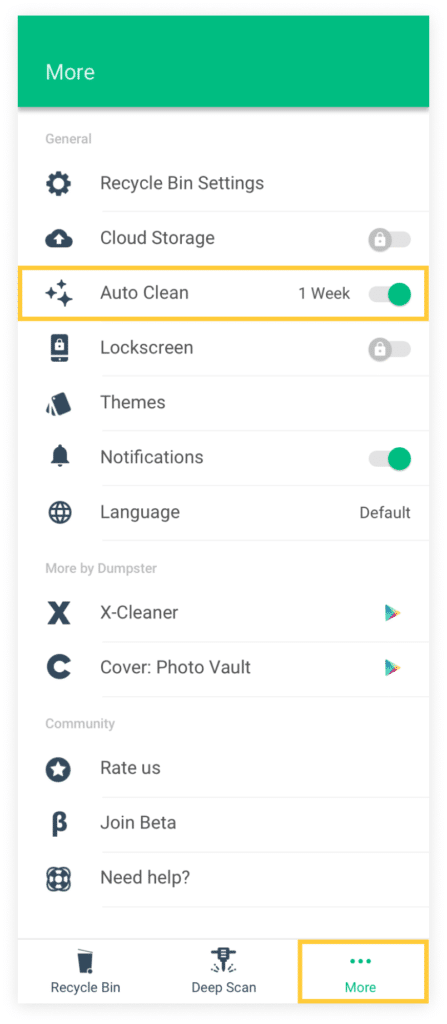 To do so, tap on the button located in the upper corner of the app’s homepage. Select Auto Clean.